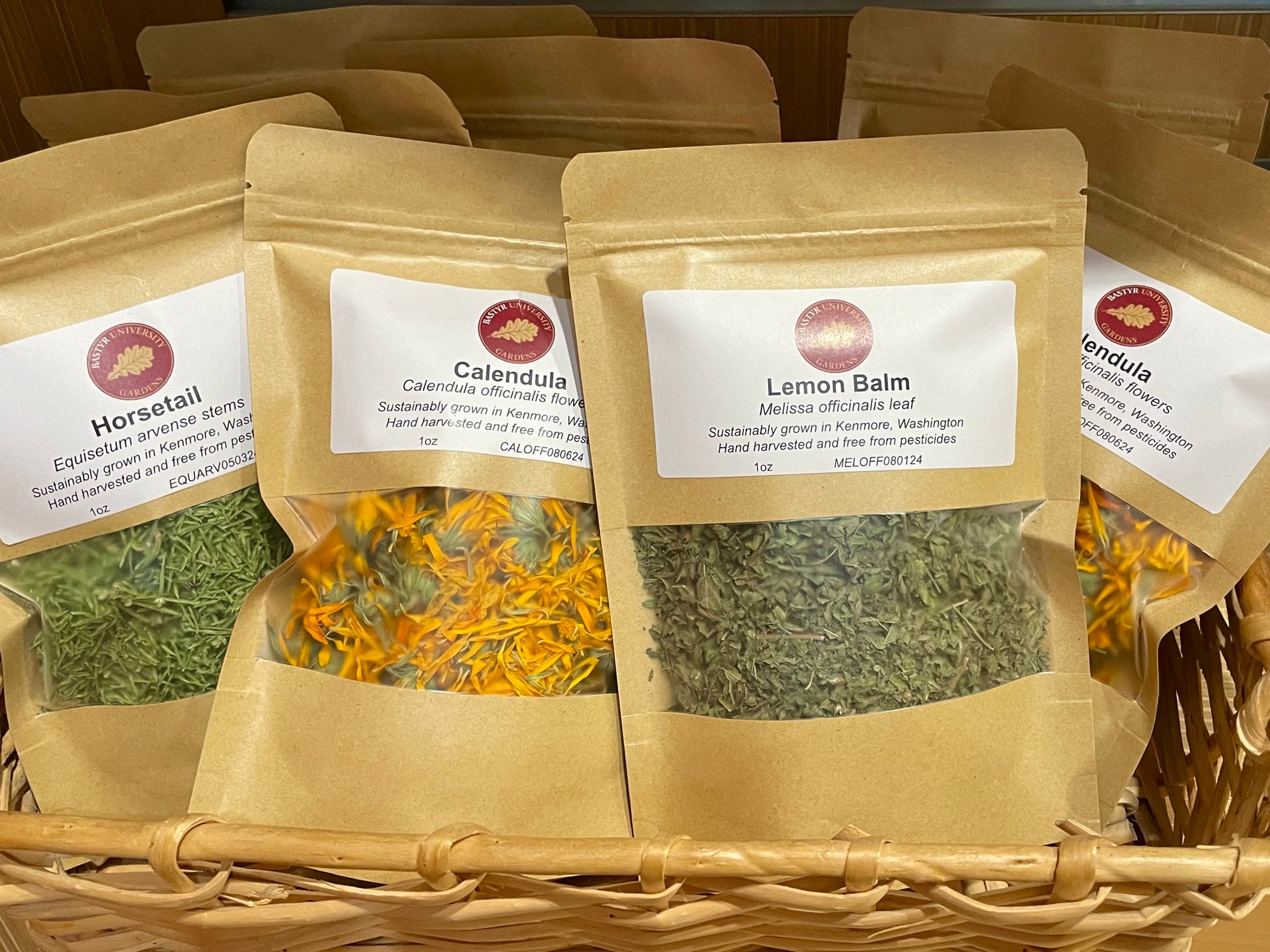 A rotating selection of seasonal, dried herbs that we sustainably grow and harvest from our Bastyr University Campus Gardens in Kenmore, WA.