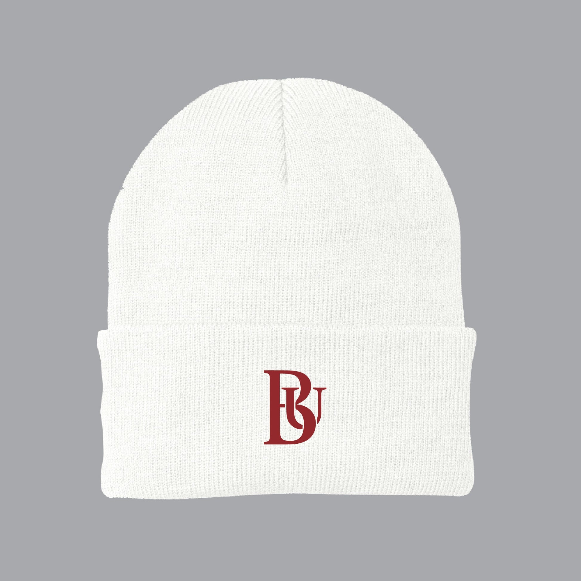 Bastyr Knit Cap Beanie - White w/ Cranberry BU